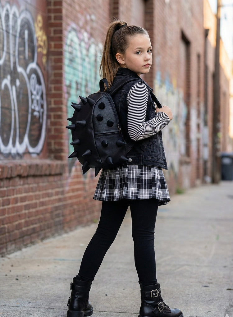 Got Your Black Daypack is far from your ordinary black daypack - it's got the same rebel spirit as the larger version, just in a more compact form. Great for those who want all the function of a backpack in a smaller size. This black daypack with spikes will take you anywhere in style.